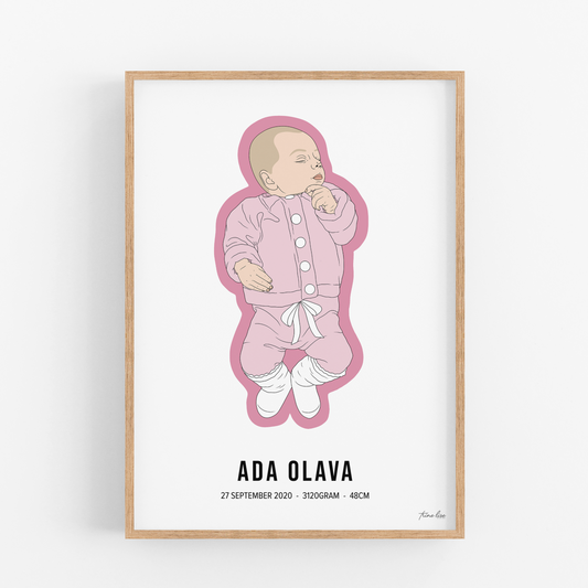 Personlig fødselsplakat, en fin dåpsgave, 1-årsgave, eller et perfekt kunsttrykk til å henge på veggen. Det fungerer i alle rom, og blir tilpasset ut i fra egne preferanser.