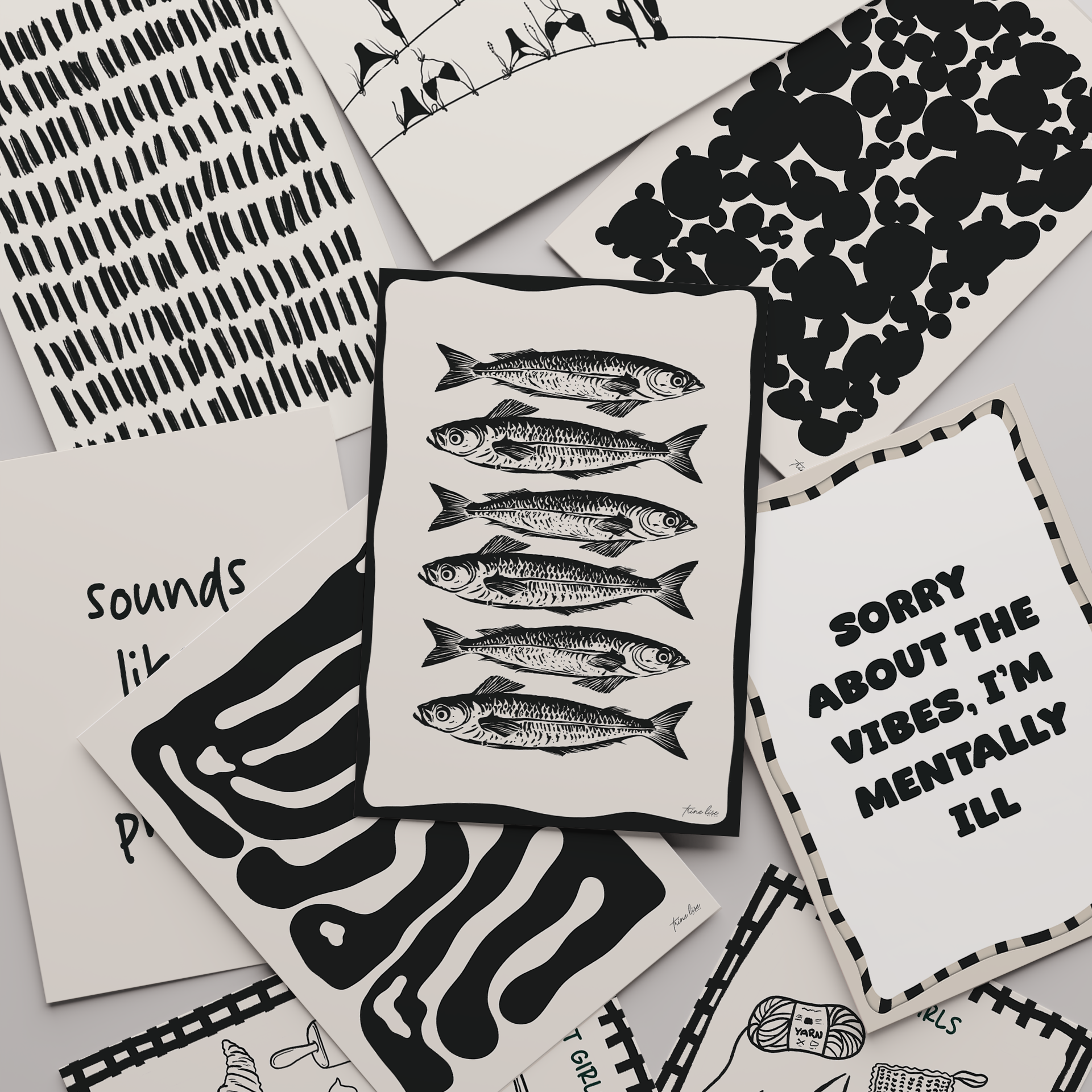 Kunsttrykkene skapes digitalt på Ipad for og så trykkes på matt fotopapir i 180g tykkelse.