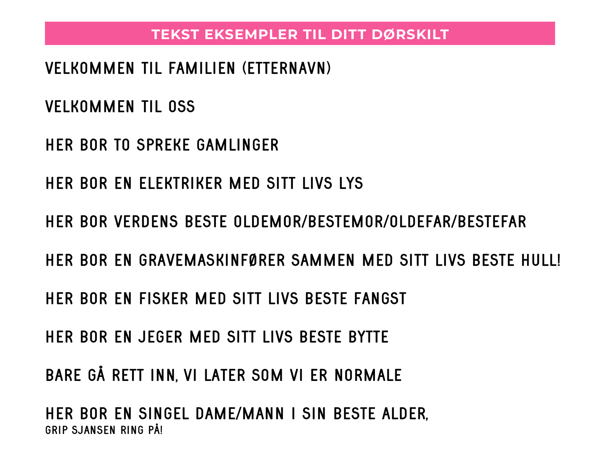 Norges kuleste dørskilt, som bidrar til et hyggelig inngangsparti.