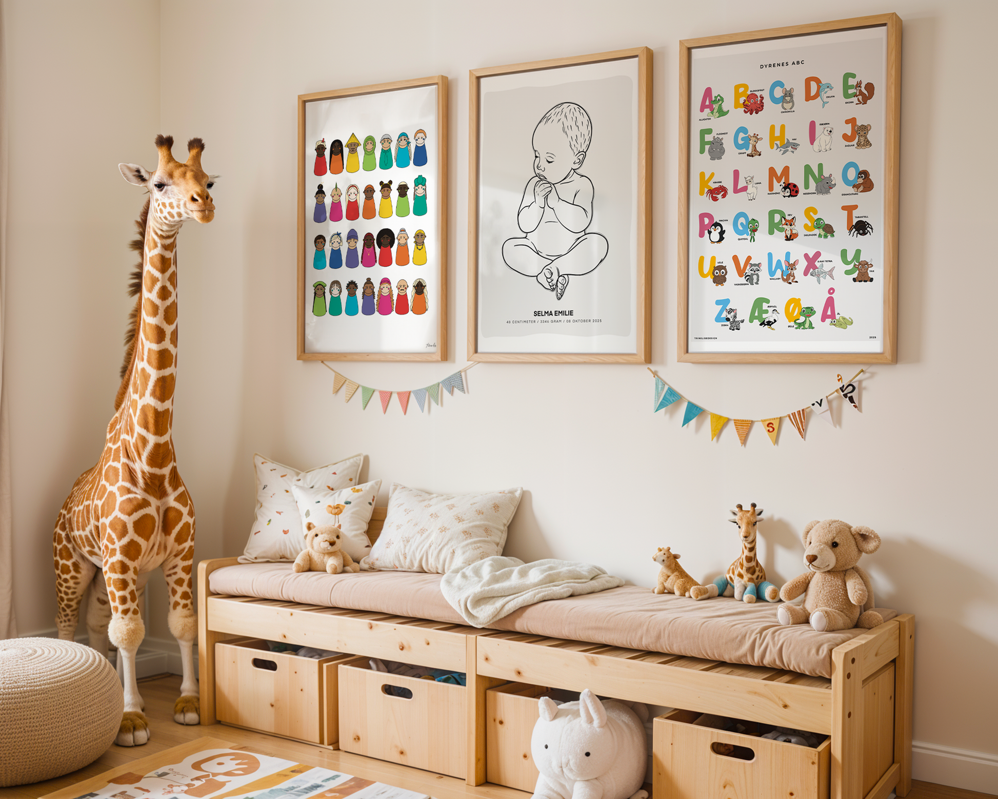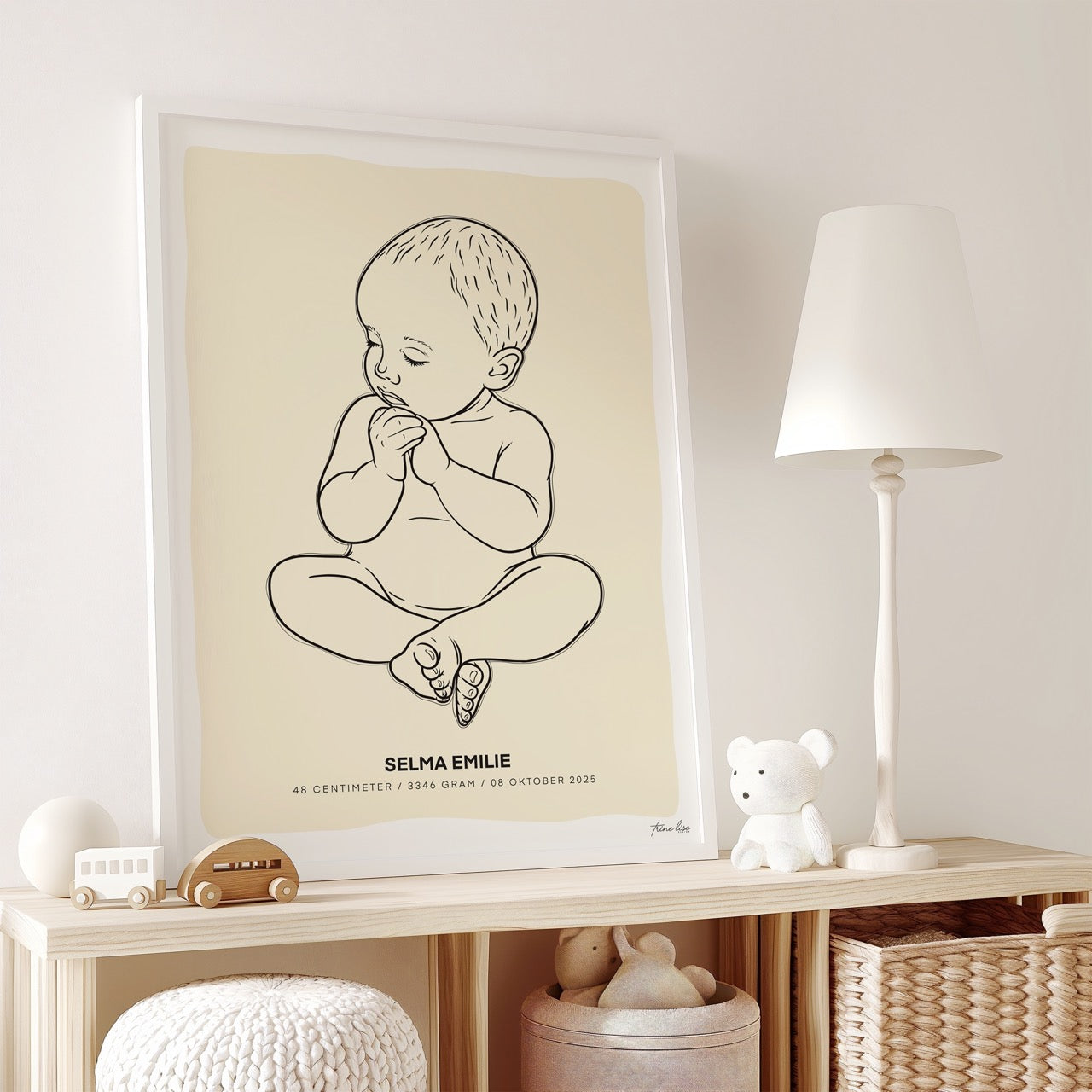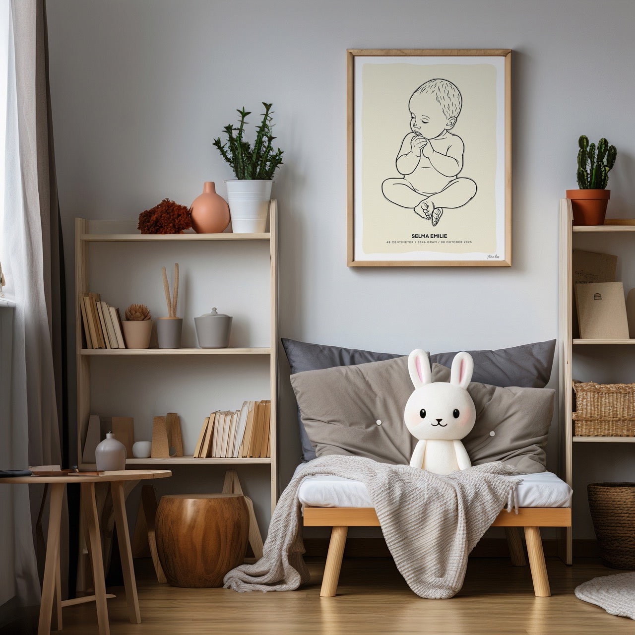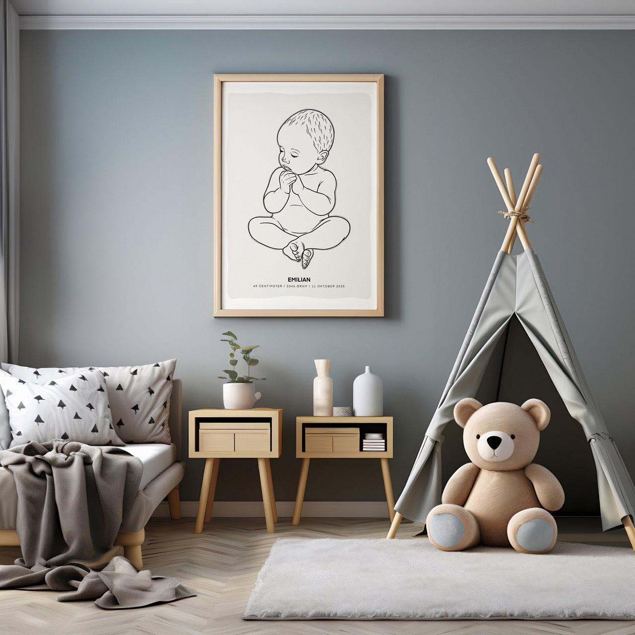 Fødselsplakat, en fin dåpsgave, 1-årsgave, eller et perfekt kunsttrykk til å henge på veggen. Det fungerer i alle rom, og blir tilpasset ut i fra egne preferanser.