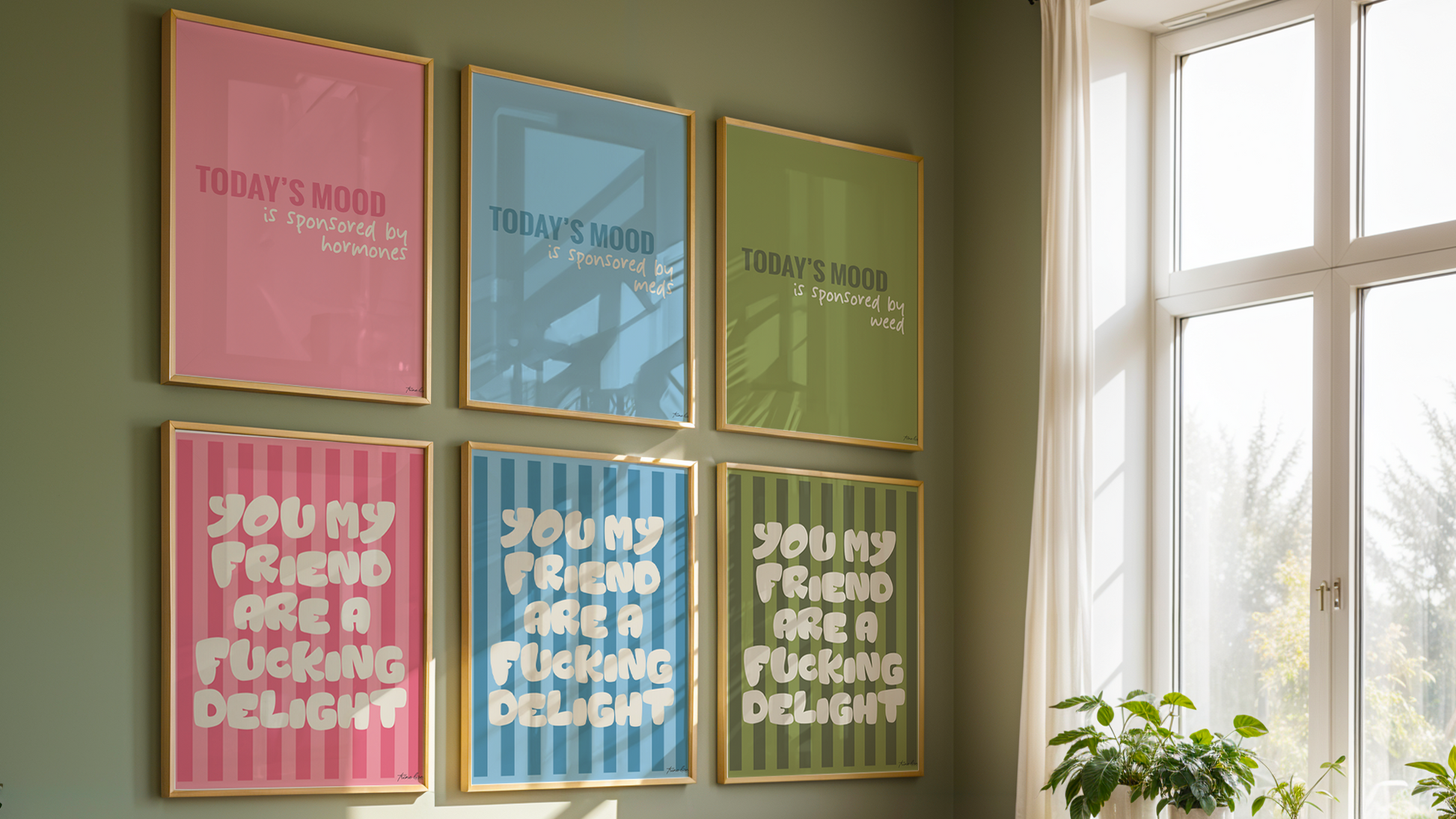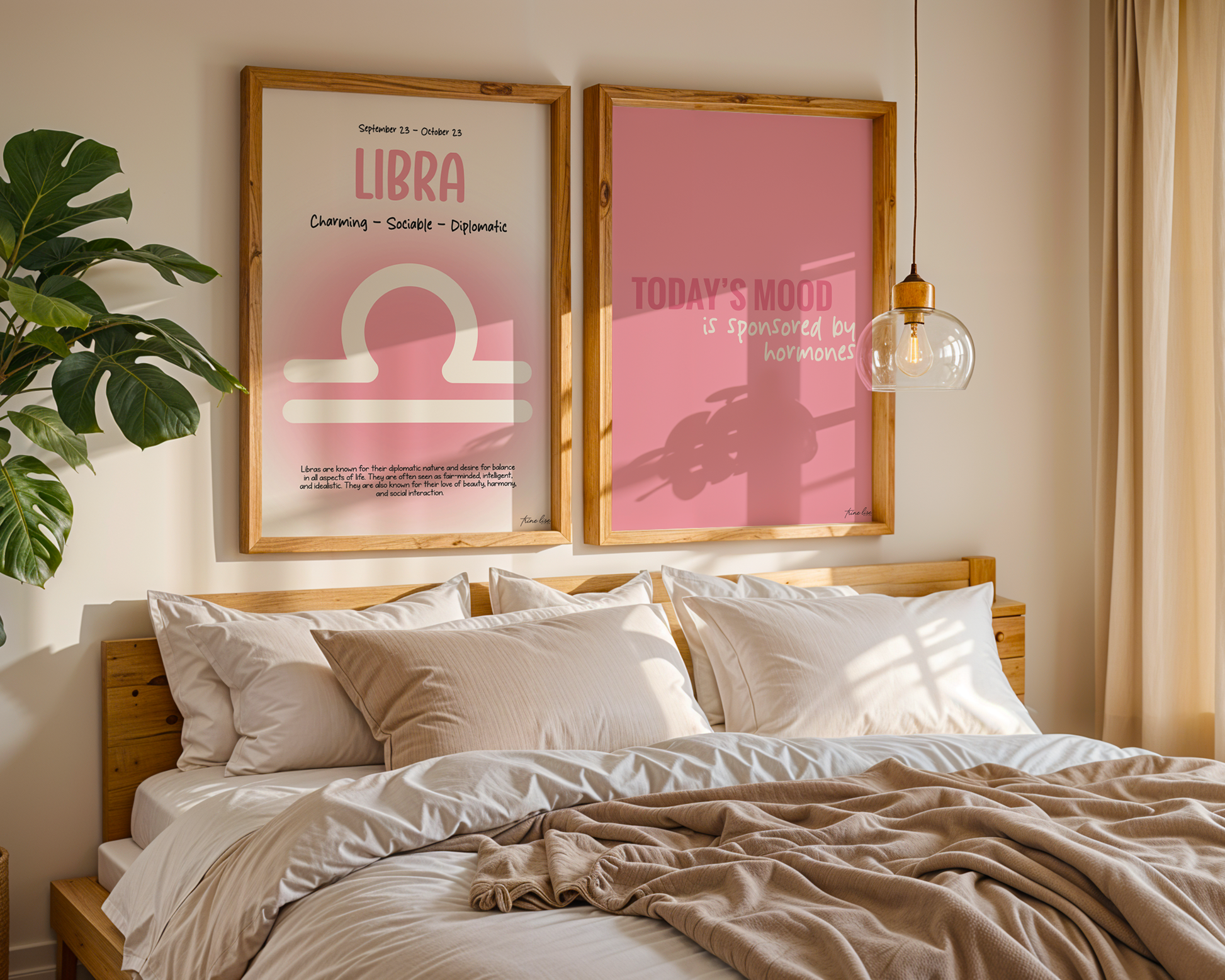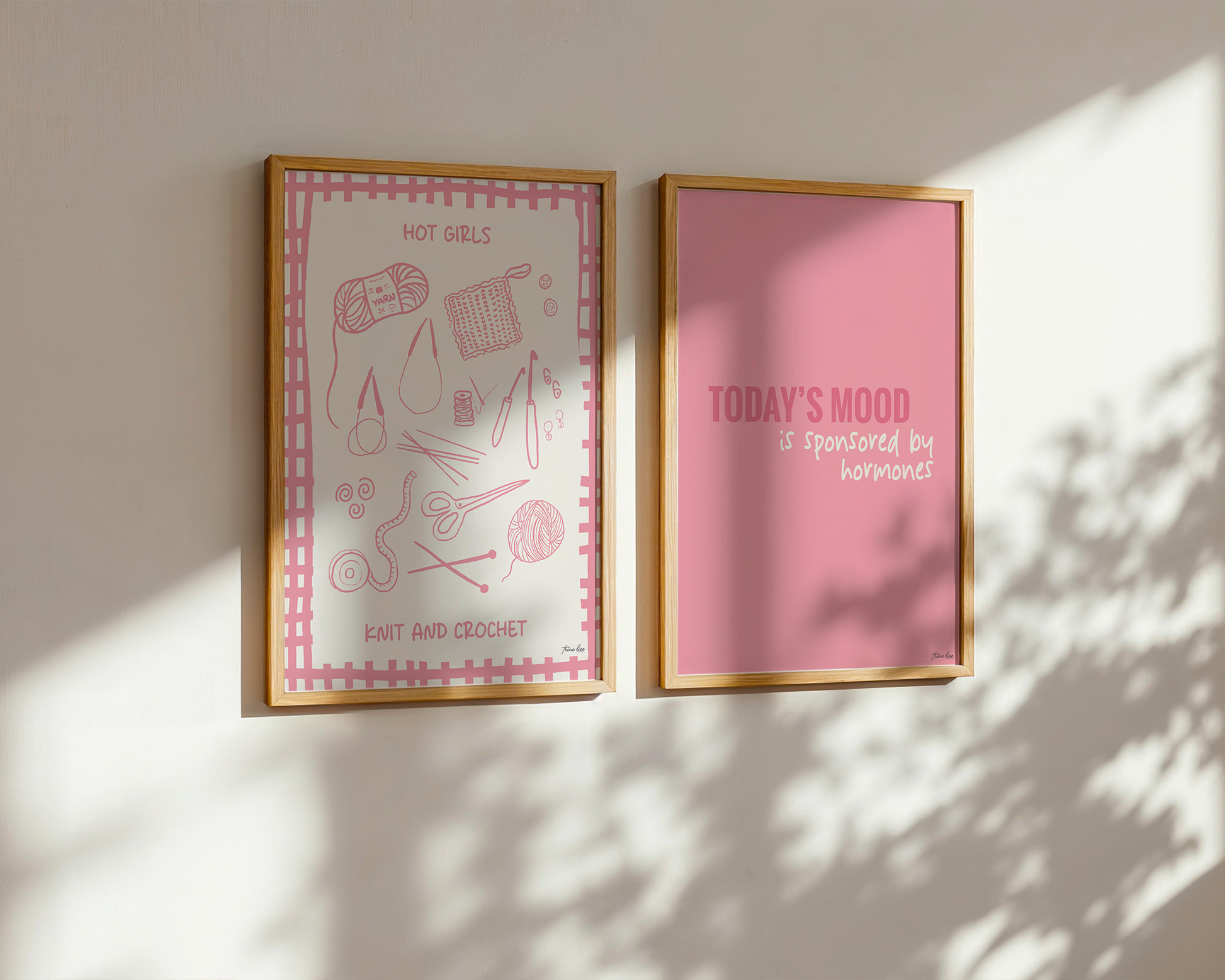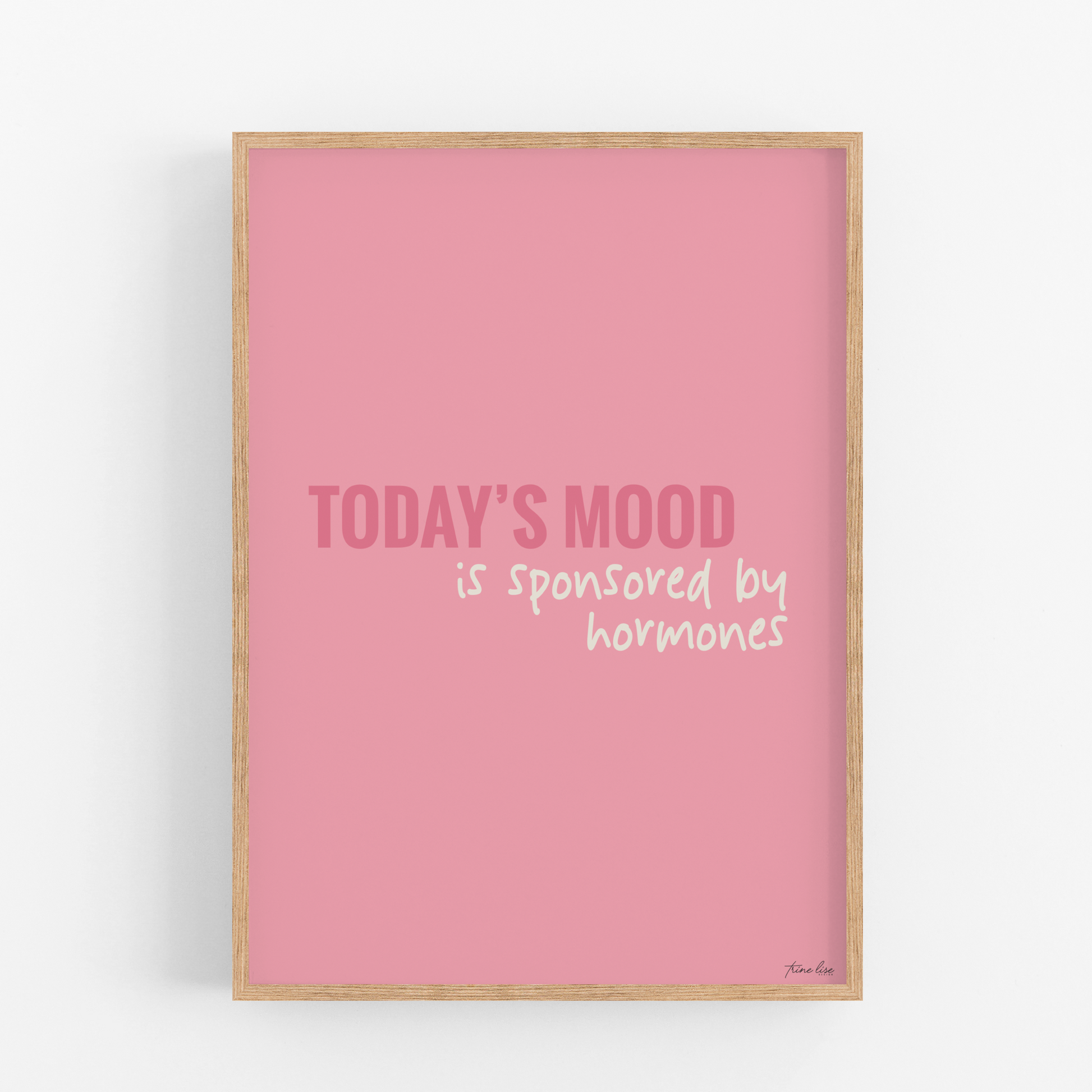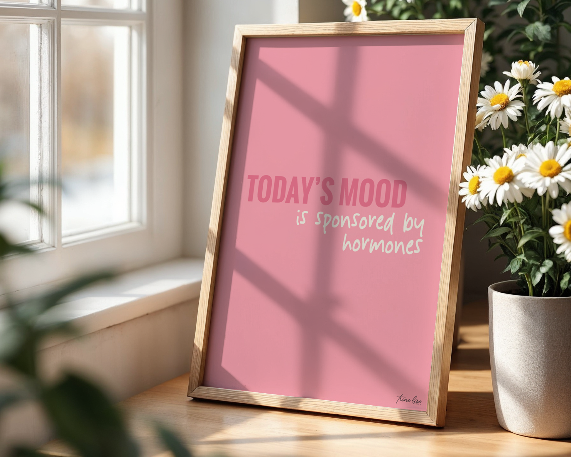 Hormones en minimalistisk tekstplakat med et gøyalt sitat i rosa.